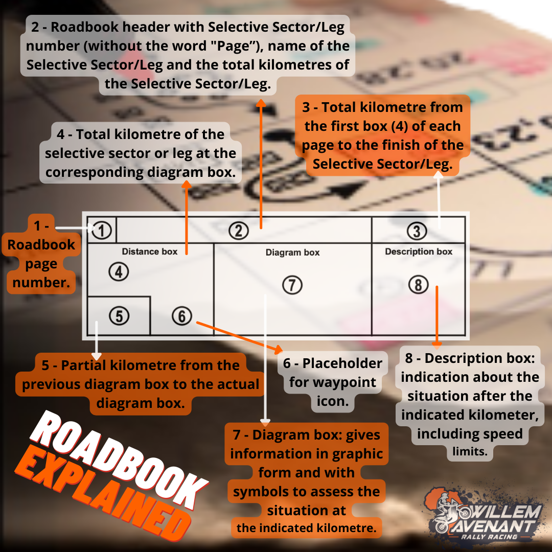 What a Roadbook Is: A paper (or digital) book containing symbols, icons, and text that guides drivers/riders through the correct route during a rally.